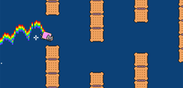 „Cat Content geht immer“, dachte sich wohl der Entwickler von Flappy Cat. Deswegen tauschte er den gelben Vogel durch eine Katze aus, deren Hintern einen Regenbogenstrahl erzeugt. Und anstatt Rohre gibt’s Kekse als Hindernisse. Das war’s. Spezielle Ideen oder Gimmicks? Fehlanzeige. Flappy Cat ist ein reinrassiger Flappy Bird-Klon. Nur eben mit Cat Content … und darauf steht die Welt. Wir auch! 🙂
