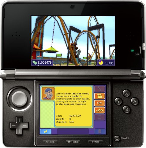 Name: Rollercoaster Tycoon 3D | Genre: Aufbau- und Management | Erhältlich für: Nintendo 3DS | Hersteller: Namco Bandai